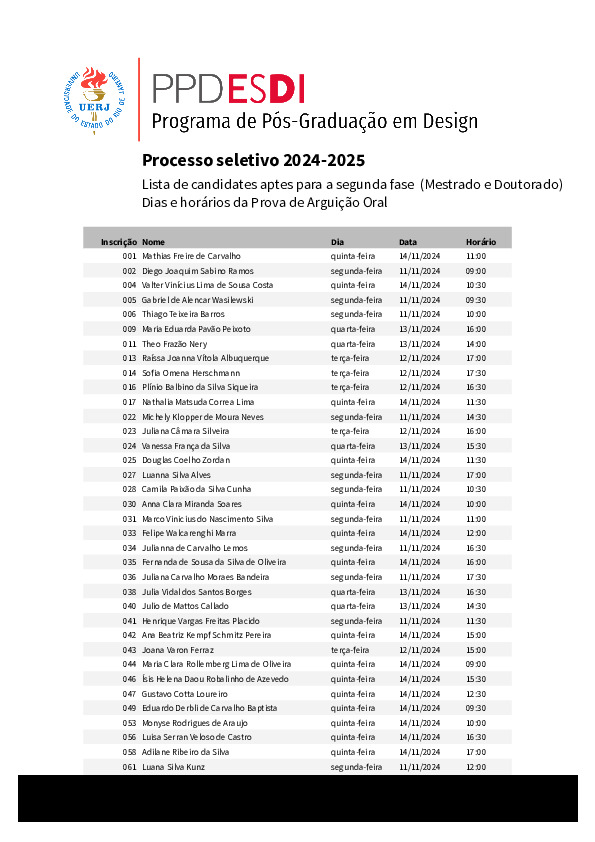 Divulgação da agenda de bancas de arguição oral para o processo seletivo 2025/2026 do PPDESDI.