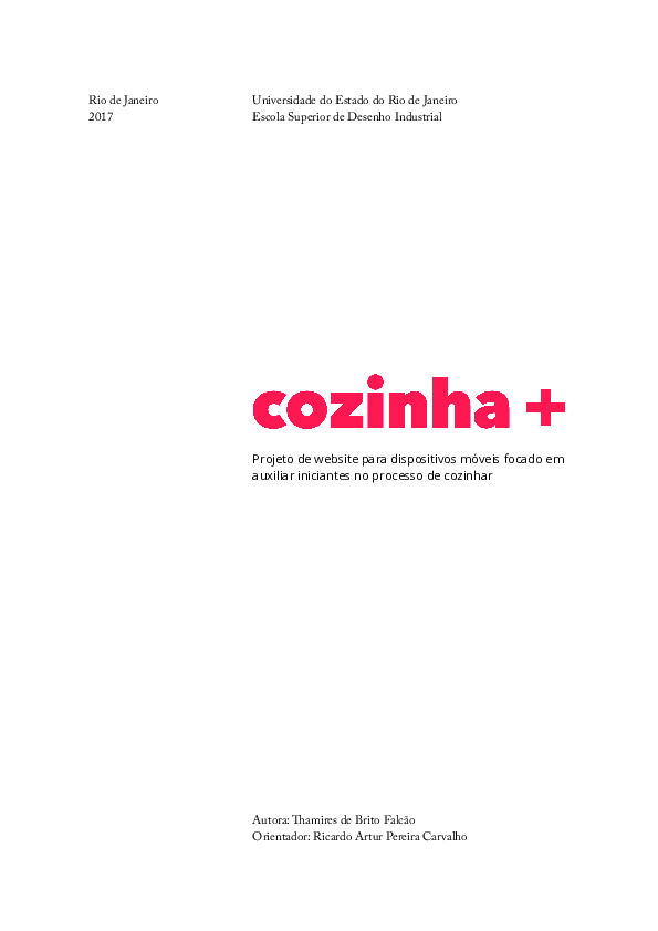 O cozinha+ é um site projetado para dispositivos móveis que tem como finalidade ajudar iniciantes na cozinha com todo o processo relacionado ao ato de cozinhar, facilitando os momentos mais difíceis, antecipando as possíveis dúvidas e entregando soluções efetivas em uma interface simples e de fácil navegação. Para isso foram feitos testes ao longo do processo junto do público-alvo a fim de entender quais são suas principais questões relacionadas à cozinha, além de também validar se o projeto criado estava atendendo tanto o usuário iniciante quanto quem se considera mais especialista no assunto.