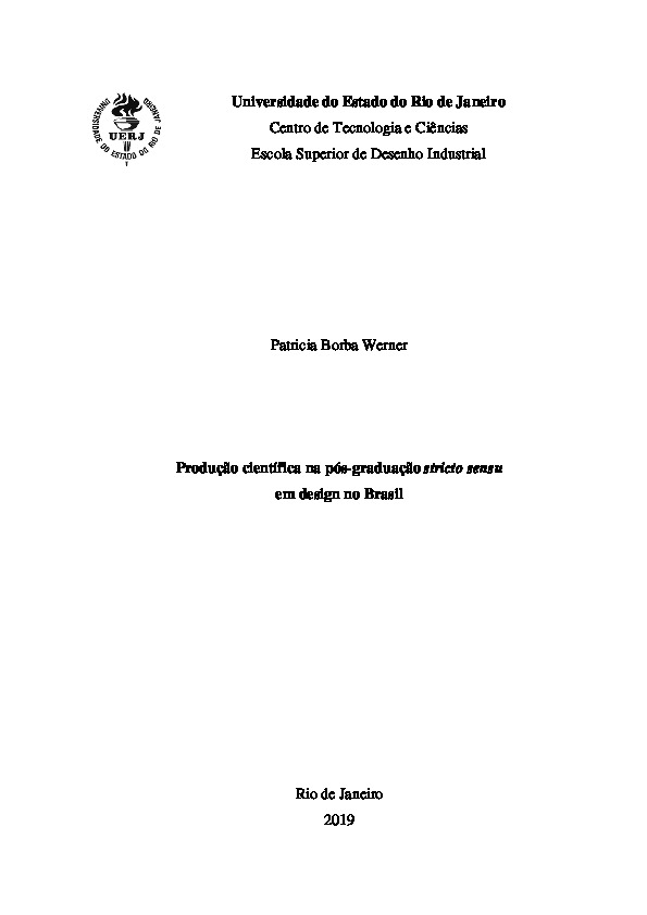The purpose of this thesis is to present the state of the art in scientific literature produced by postgraduate programmes in Design in Brazil, on the basis of the four-year assessment by Brazil s postgraduate studies coordination office (Coordenação de Aperfeiçoamento de Pessoal de Nível Superior, CAPES), from 2013 to 2016. In this study, scientific production is understood to be articles published in periodicals, studies in annals, books, book chapters, theses and dissertations. That definition considered the criteria of the CAPES, which is responsible for evaluating postgraduate programmes in Brazil. The central problem that this study was conducted to address is that these programmes are independent, isolated from one another and arranged in the form of an archipelago . This has resulted in scientific production that is fragmented and self-obsessed, in research with little applicability and, lastly, in difficulty in internationalising Design as a scientific field. That said, the study hypothesis was specified as: establishing scientific production in Design in Brazil depends on scientific relations internal and external to the postgraduate programmes in this field and driven by the coordinators, faculty, students and alumni. The methodology for conducting this study was divided into three complementary stages: a literature survey, documentary research and interviews. In order to contextualise postgraduate studies as a scientific field and study the independent variable of the hypothesis, the central reference used was the work of Pierre Bourdieu, particularly his Field Theory. During the documentary research, a systematic review was made of articles in the proceedings of the 2014 and 2016 11th and 12th P&D Design congresses. Then, data on scientific production by postgraduate programmes in Design, relating to the 2013-2016 four-year evaluation and stored on the CAPES Sucupira Platform, were collected, tabulated and analysed. This thesis presents the results in terms of production of theses and dissertations during the study period. Lastly, as part of the field research for this thesis and for purposes of qualitative analysis, it was decided to interview coordinators of postgraduate programmes in Design and the coordinators for the CAPES Architecture, Urbanism and Design assessment area.