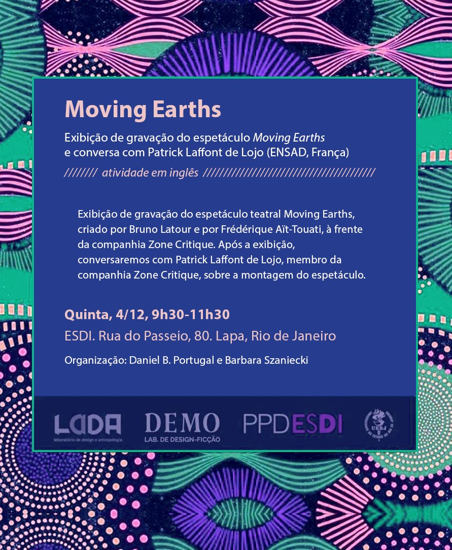 Na quinta pela manhã, teremos a exibição de gravação da peça Moving Earths. Esta atividade é aberta para todos/as!