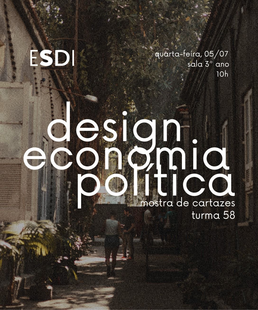 Mostra de cartazes realizados durante a disciplina de Design, economia e política pela turma 58.