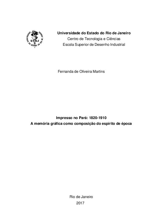 This research aims to investigate the history of Pará s printed objects in the 19th century. For this purpose, the typographic workshops that operated during that period, and its production, were mapped. The bibliography on the subject was taken into account and research was carried out in libraries and archives in Rio de Janeiro, Belém and São Paulo collecting newspapers, almanacs, posters, postcards, official forms such as edicts, offices and reports related to the period in question. Methodologies were developed to visualize the pertinent questions of the collected material, from which relevant examples were selected to be analyzed in their graphic configuration. In association with studies on graphic memory, the themes of graphic design were related to socioeconomic contexts and to the influence of technological evolution in the graphic configuration of printed matter. Classical authors in the field of graphic design, such as Michael Twyman and studies in material culture were considered in relation to Print Capitalism, concept developed by Benedict Anderson. Typographical workshops are capitalist industrial enterprises, so the work of the typographers and the printed works they produce are the result of social and economic relations pertinent to the historical moment in which they are inserted, at the same time that take part in the construction of the spirit of the time.