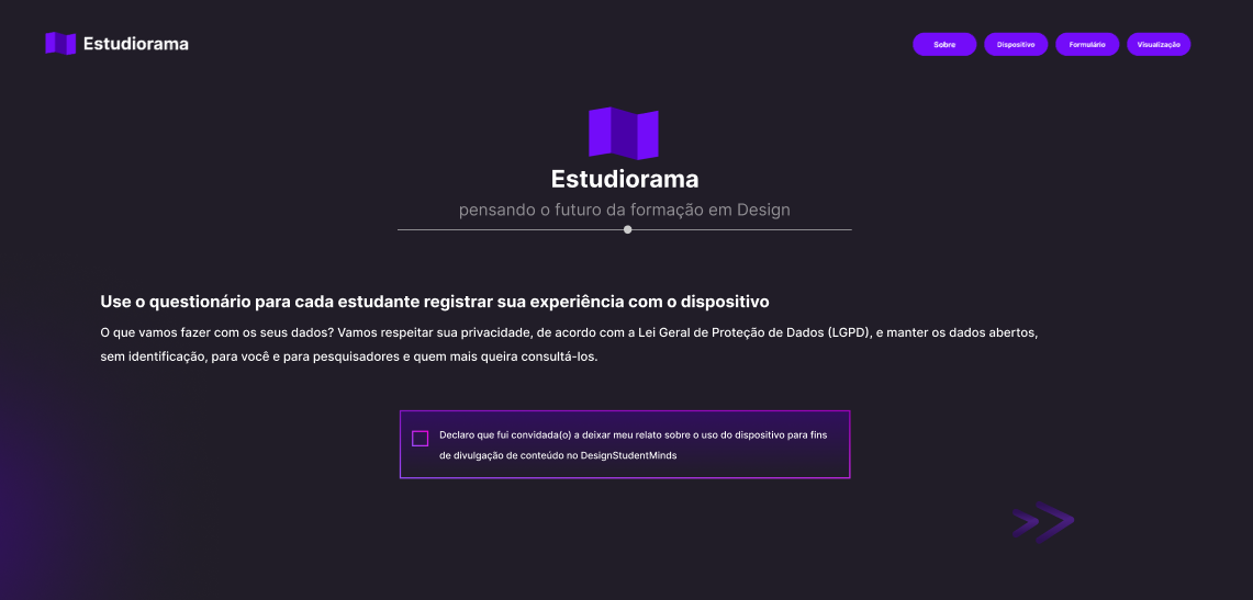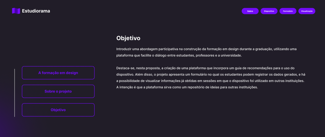 O desejo de investigar a educação em design surge da minha experiência pessoal, tanto antes quanto principalmente depois de me tornar estudante da ESDI/UERJ, onde pude me aprofundar e entender este como um processo complexo, que vai além de ensinar como deixar objetos visualmente mais atrativos. Com base nisso, o objetivo principal deste trabalho se delineia em investigar e analisar a educação em design, considerando o contexto social e histórico, mas como trazer a perspectiva dos estudantes da ESDI/UERJ, para esse processo. Destaco a importância, pois estes podem representar contribuições significativas para a elaboração e compreensão dos futuros rumos da educação, uma vez que são especialistas em sua própria experiência. A primeira parte deste trabalho teve como objetivo realizar uma análise teórica sobre o assunto, compreendendo a natureza desses tópicos e fornecendo insumos para a segunda parte do trabalho. Essa segunda parte propõe uma análise do contexto social e histórico relacionado ao debate sobre o futuro da educação em design, examinando seu desenvolvimento e estado atual. Isso se delineia a partir das provocações apresentadas por Meyer & Norman (2019) e Noel et al. (2023). Com base nas percepções desses autores, busca-se identificar métodos do design e das ciências sociais que podem contribuir no delineamento de ações pedagógicas e colaborar com o futuro da educação nesse campo. Na segunda parte, por meio de uma abordagem mais prática, envolvendo pesquisa de campo, apresento o processo de criação, implementação e os resultados de um dispositivo desenvolvido como estratégia gerar percepções que contribuam para o futuro da formação em design, além de promover o envolvimento dos estudantes no debate sobre o tema desta pesquisa. Realizou-se uma sessão generativa para validar se o dispositivo desenvolvido atende a esses requisitos, antes de proceder para a terceira parte deste trabalho, que aborda o desenvolvimento do produto. Apresento como produto da pesquisa um protótipo de alta fidelidade de uma plataforma com visualização dos dados gerados pelo dispositivo, assim como a metodologia aplicada para obtê-los.
