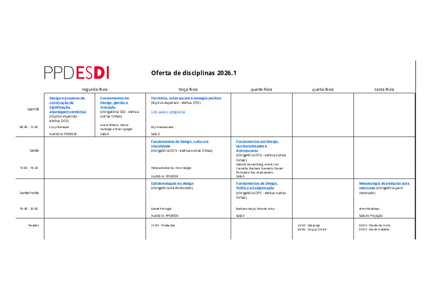 Confira as disciplinas do PPDESDI ofertadas no primeiro semestre de 2026.