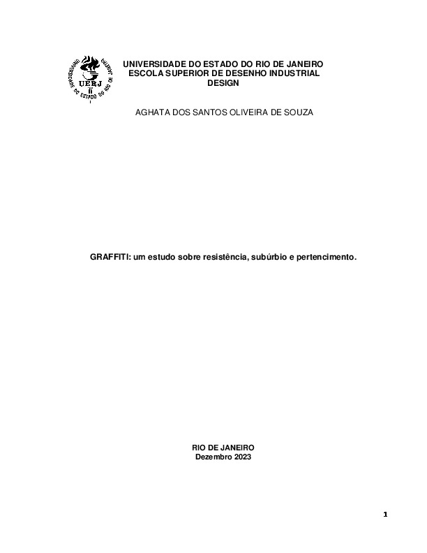 Graduação Design GRAFFITI: um estudo sobre resistência, subúrbio e pertencimento. Design de Comunicação técnica artística Resistência graffiti arte urbana design de serviços Autor Autoria Aghata Oliveira
